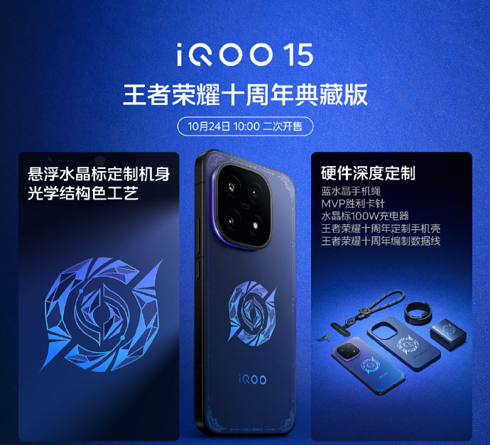 iQOO 15王者荣耀十周年典藏版可以说是最有诚意的定制版手机,想要入手的话别错过二次发售,在iQOO官方商城以及众多第三方平台均可入手。